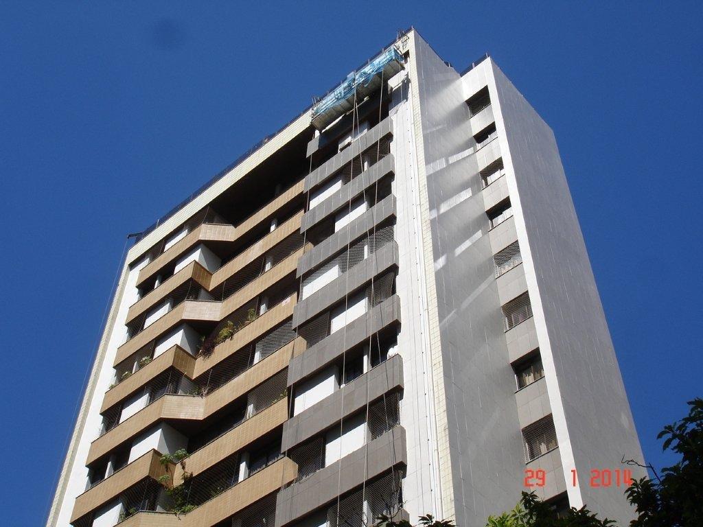 A equipe da FHP executou a instalação de sistema de fachada aerada utilizando insertes metálicos de aço inoxidável AISI 304. A obra, com 16 andares e 2600m², foi concluída em 5 meses, sem impacto na rotina dos moradores.
